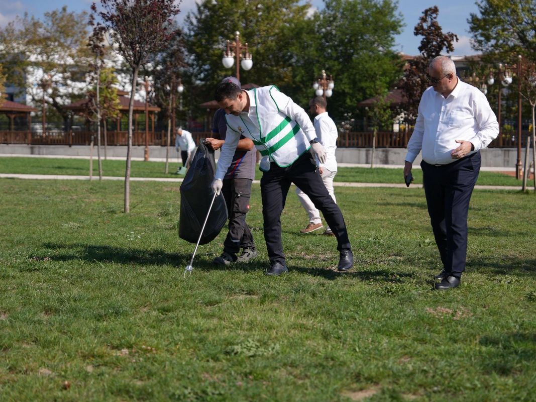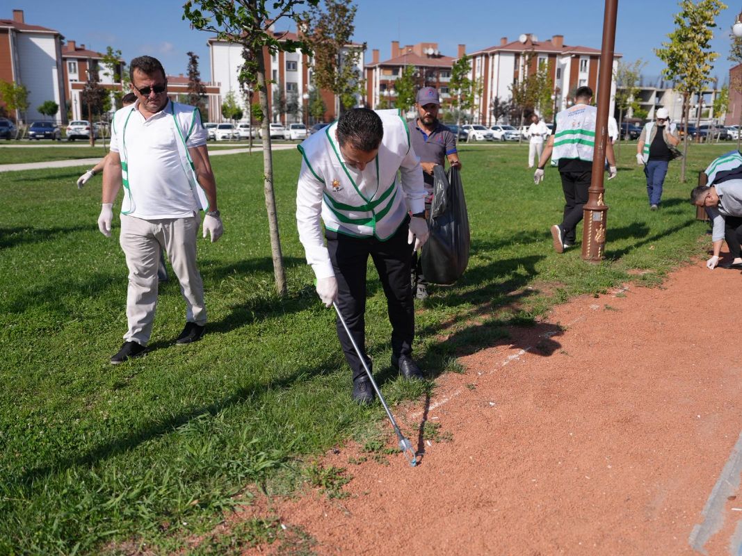 "Belediye Başkanımız Dr. Faruk Özlü'nün başlattığı çağrı kısa sürede karşılık buldu. Biz de teşkilat olarak sosyal sorumluluk anlayışıyla bu kampanyaya destek veriyoruz. Çevre ve Şehircilik Politikaları Birimimizin katkısıyla bugün burada 23 Nisan Parkı'nda hep birlikte temizlik yapıyoruz."