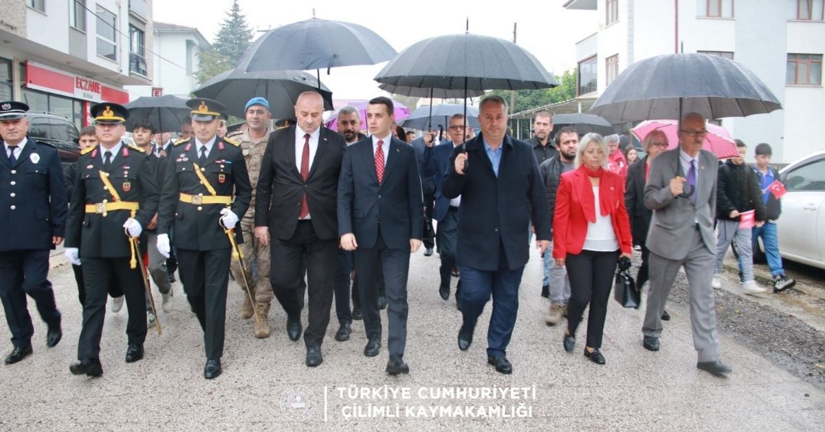 Cumhuriyetimizin ilanının 102. yıl dönümü, Çilimli’de büyük bir coşku ve gururla kutlandı. İlçede düzenlenen kutlama programına Çilimli Kaymakamı Furkan Alpay, Belediye Başkanı Yılmaz Yıldız, protokol üyeleri, öğrenciler, öğretmenler ve çok sayıda vatandaş katıldı.
