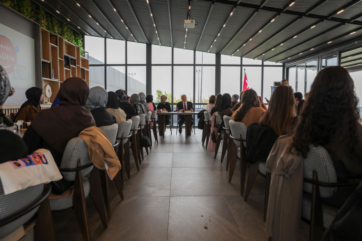 Mutfak Sanatları Merkezi’nde gerçekleştirilen programa, KADEM Düzce İl Temsilcisi Dr. Fatma Kızılelmas, Genç KADEM İl Sorumlusu Sude Naz Geçici ve Topluluk Başkanı Berra Özel de katıldı. Samimi bir atmosferde gerçekleşen buluşmada Başkan Özlü, öğrencilerle birebir sohbet etti, hangi bölümlerde eğitim aldıklarını sordu ve kariyer planları hakkında fikir alışverişinde bulundu.