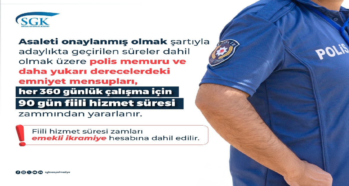 SGK tarafından yapılan bilgilendirmeye göre fiilî hizmet süresi zamları, yalnızca prim gününü artırmakla kalmayacak; emekli maaşına esas hesaplamada da dikkate alınacak. Böylece polis ve emniyet personeli, hem daha yüksek emekli maaşı hem de daha fazla ikramiye alma hakkına kavuşacak.